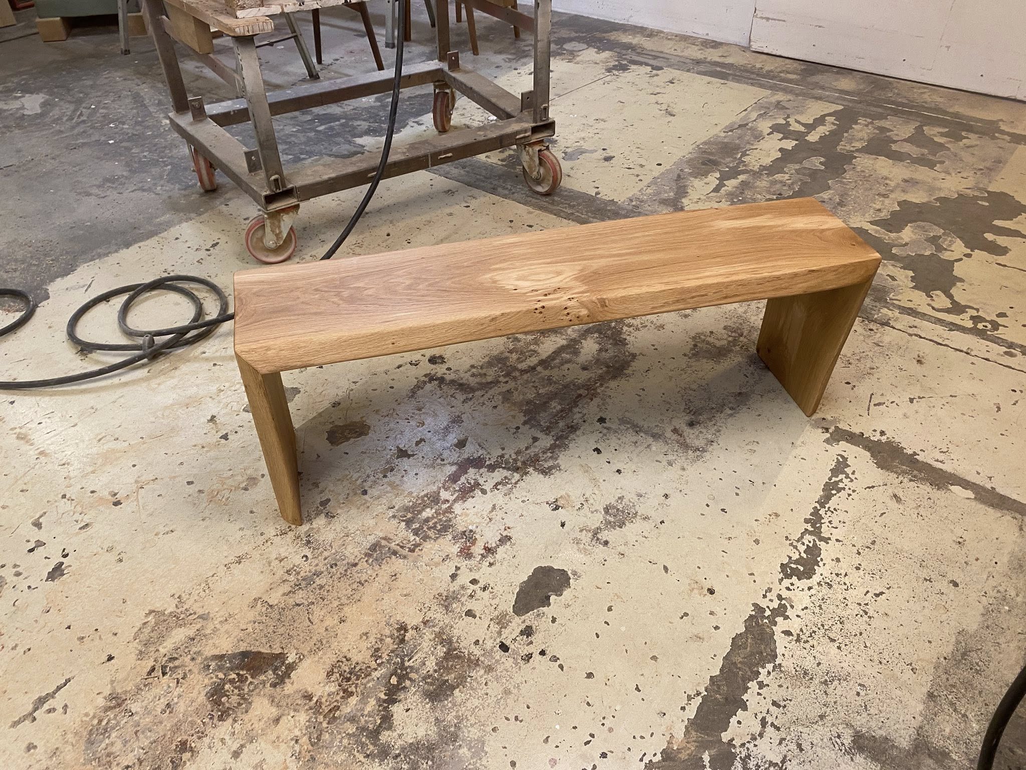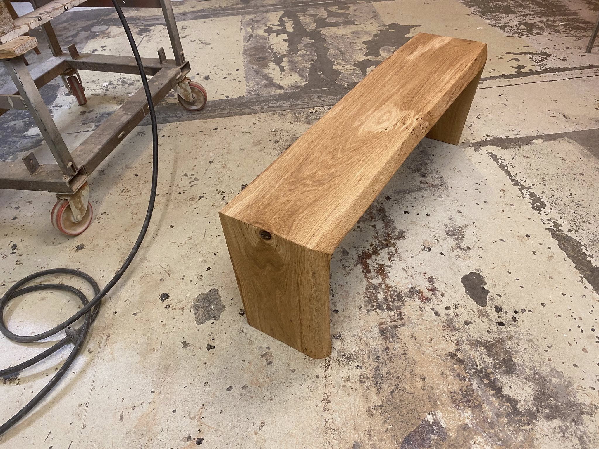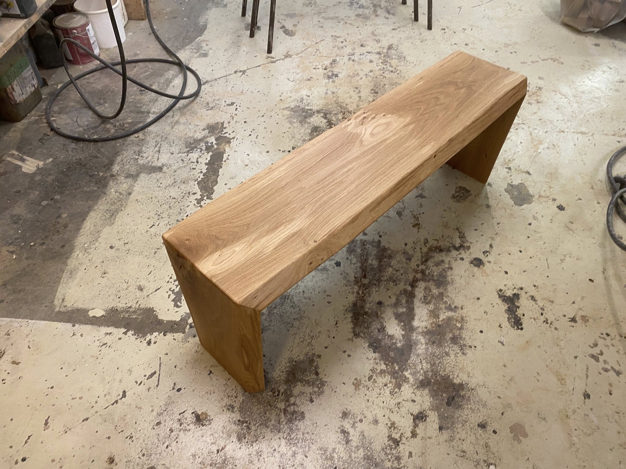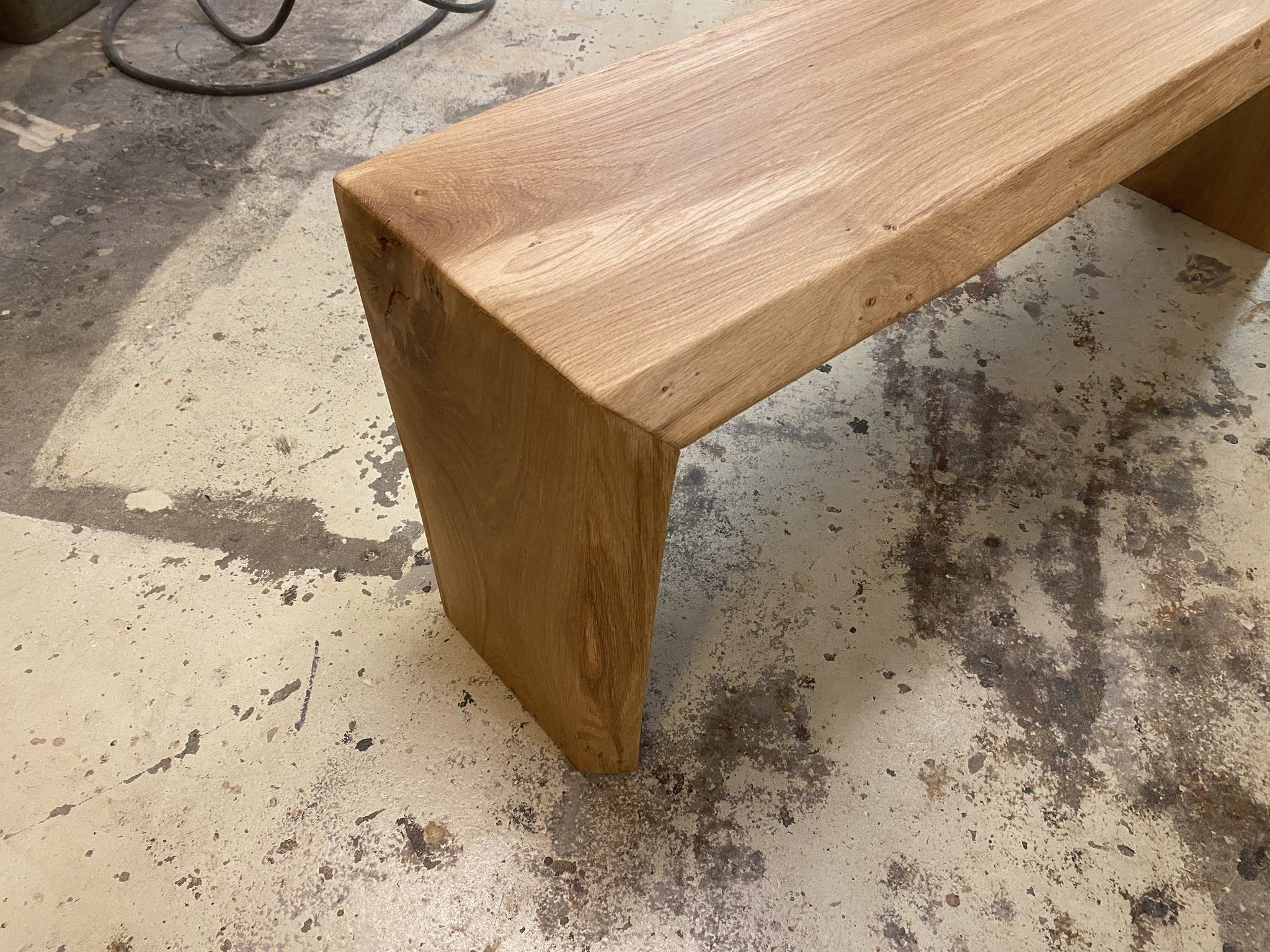 Flot rustik bænk eg naturolieret. L 123 cm b 28 cm T 4 cm .H 44,5 cm .