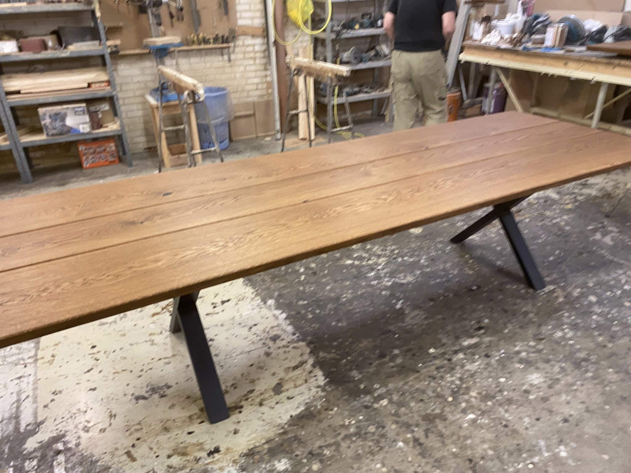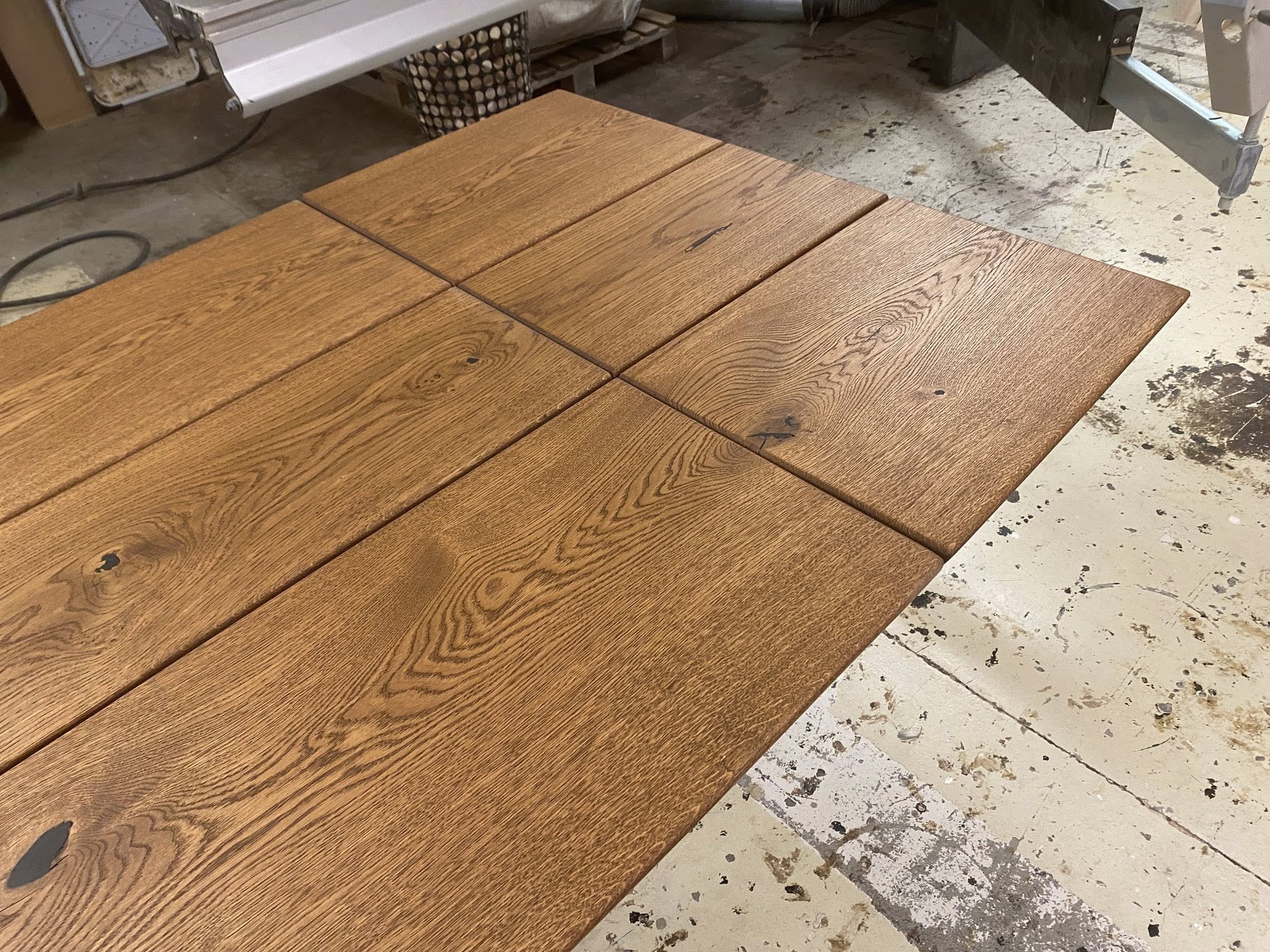 FLOT RUSTIKT plankebord rustik eg valnød olieret L 400/300 cm B 104 cm T 4 cm .
