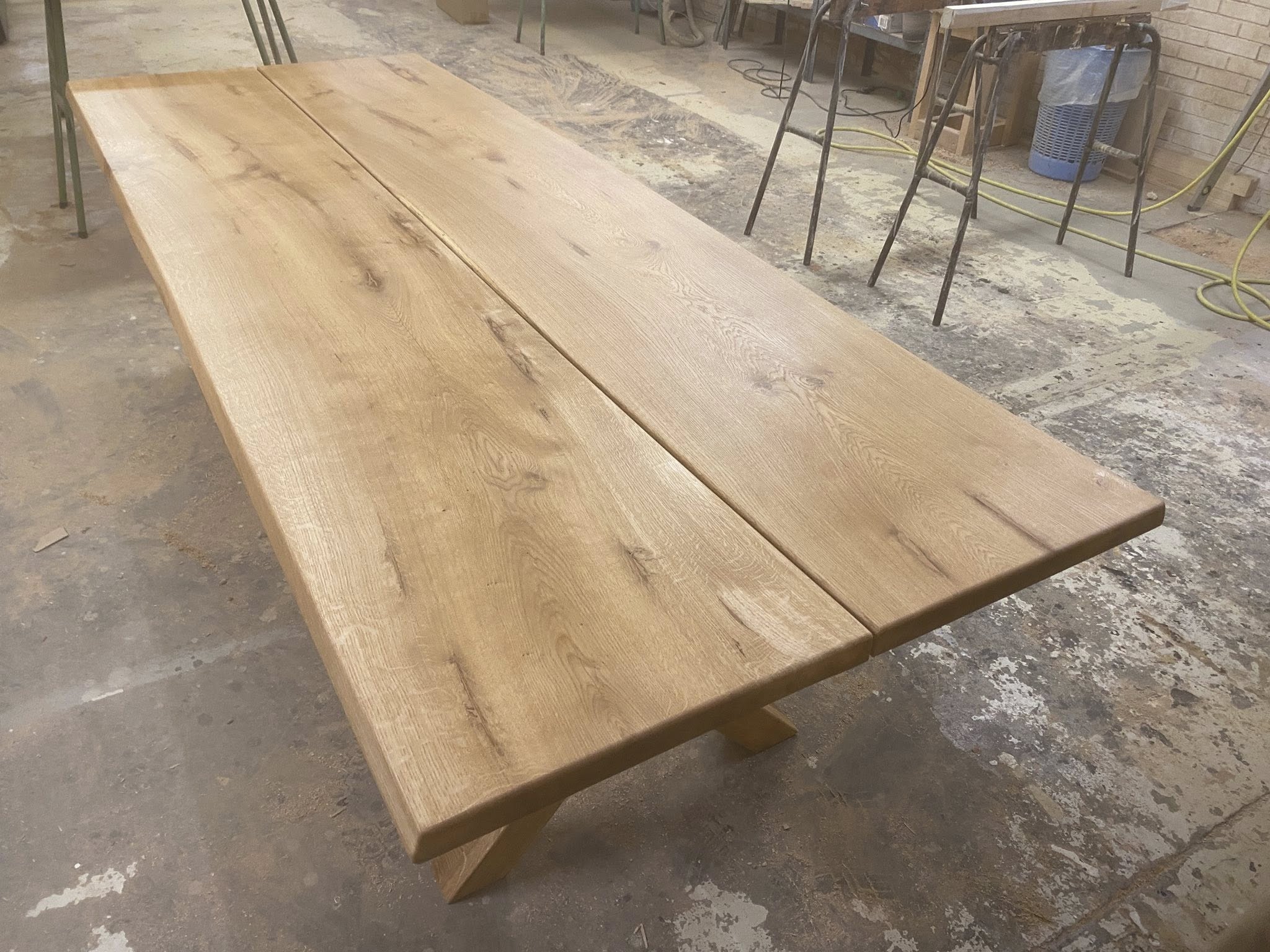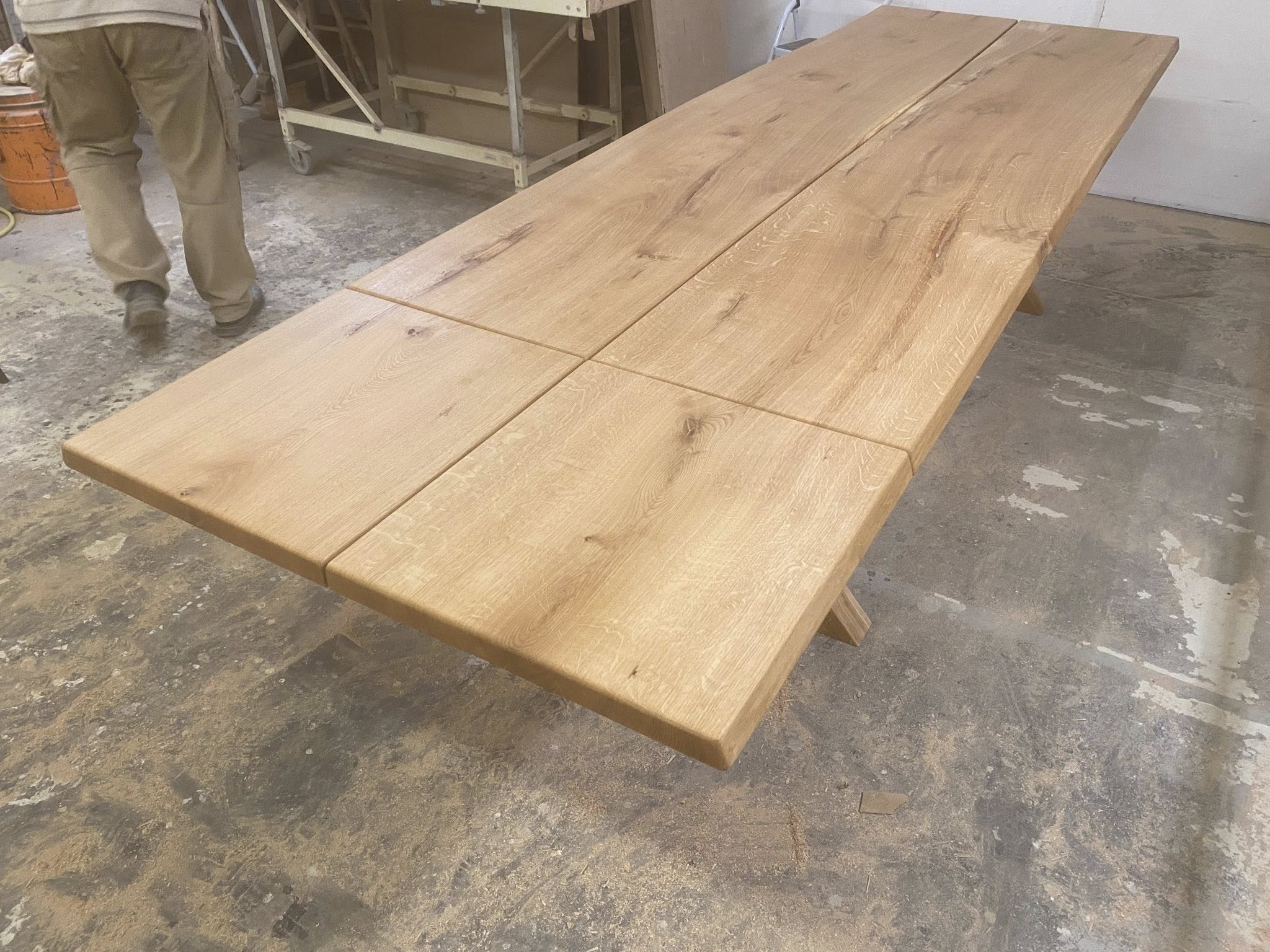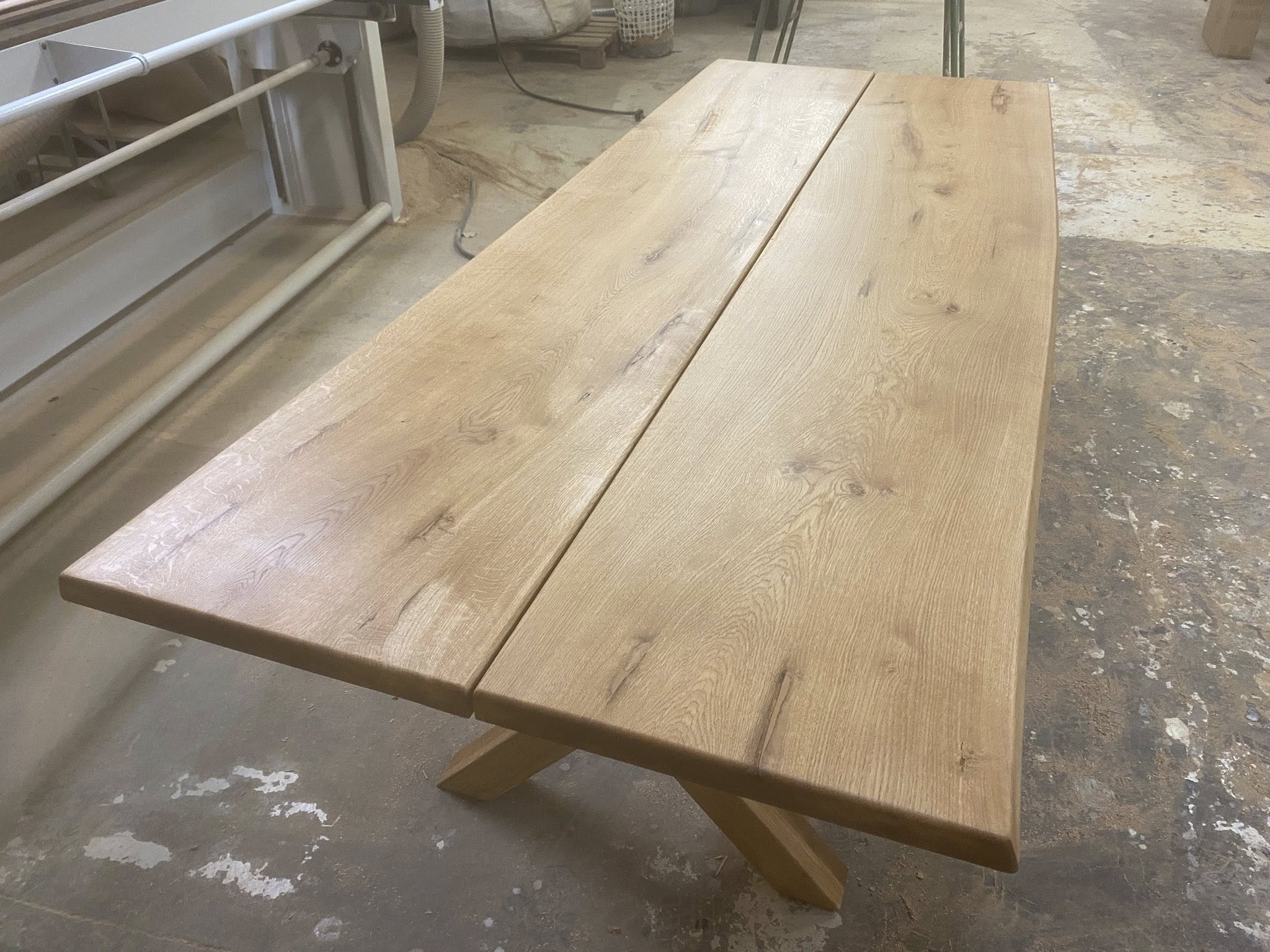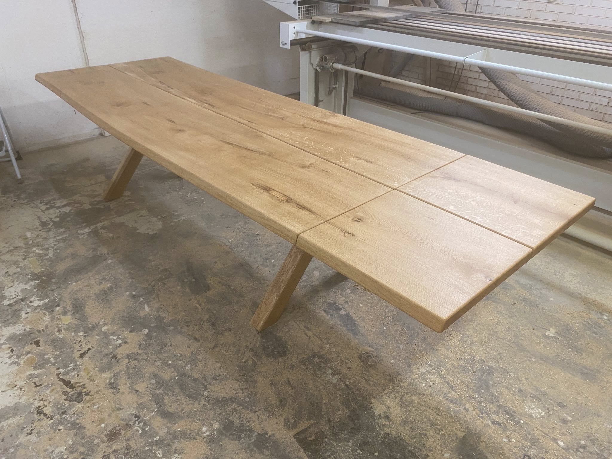 FLOT MEGET RUSTIKT plankebord eg natur olieret L 300/250 cm B 93cm T 4 cm .