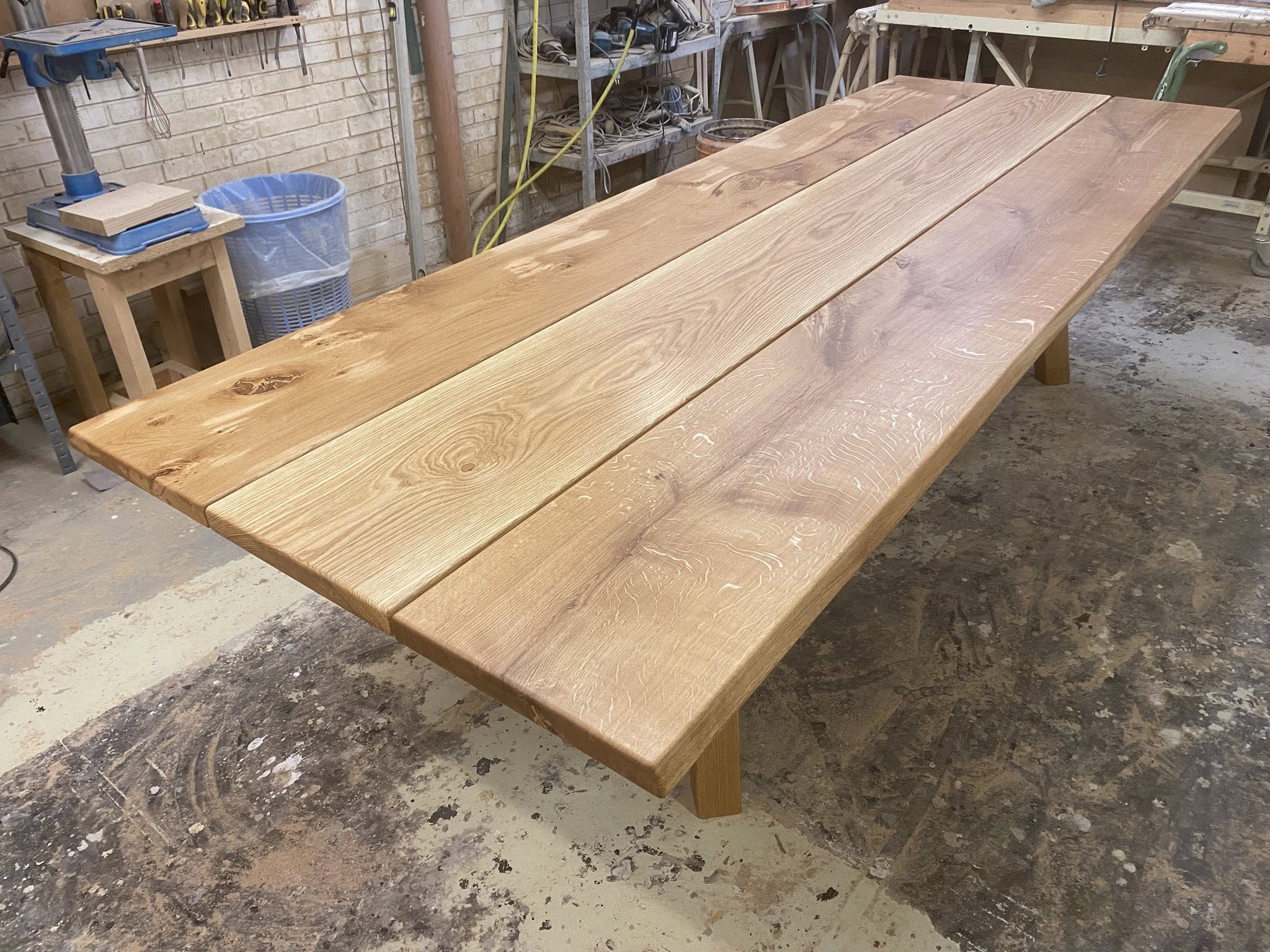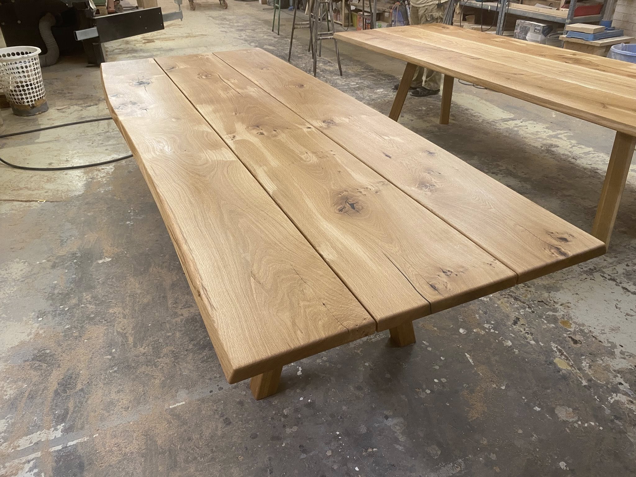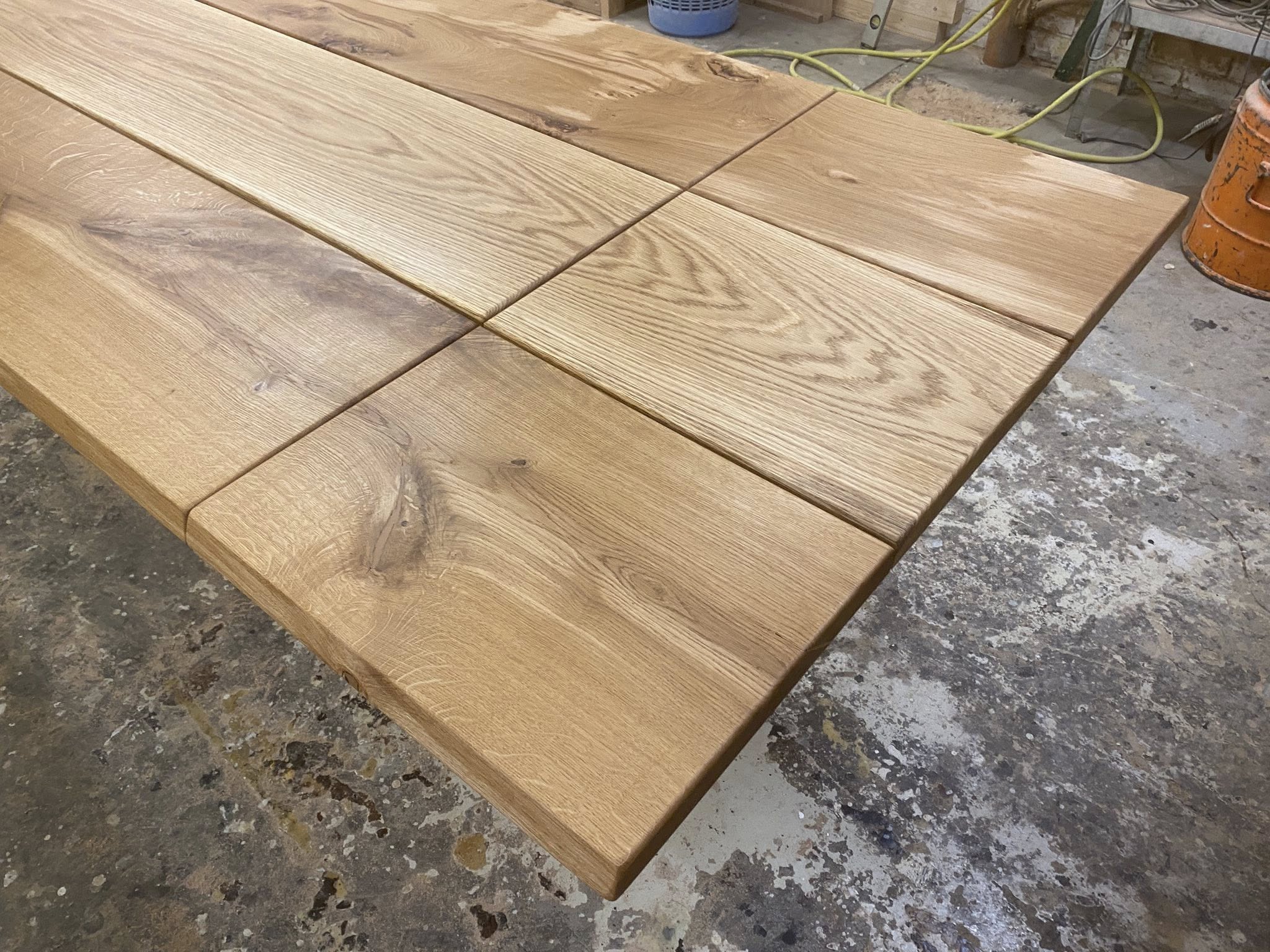 FLOT MEGET RUSTIKT plankebord eg natur olieret L 400/300 cm B 107 cm T 4 cm .