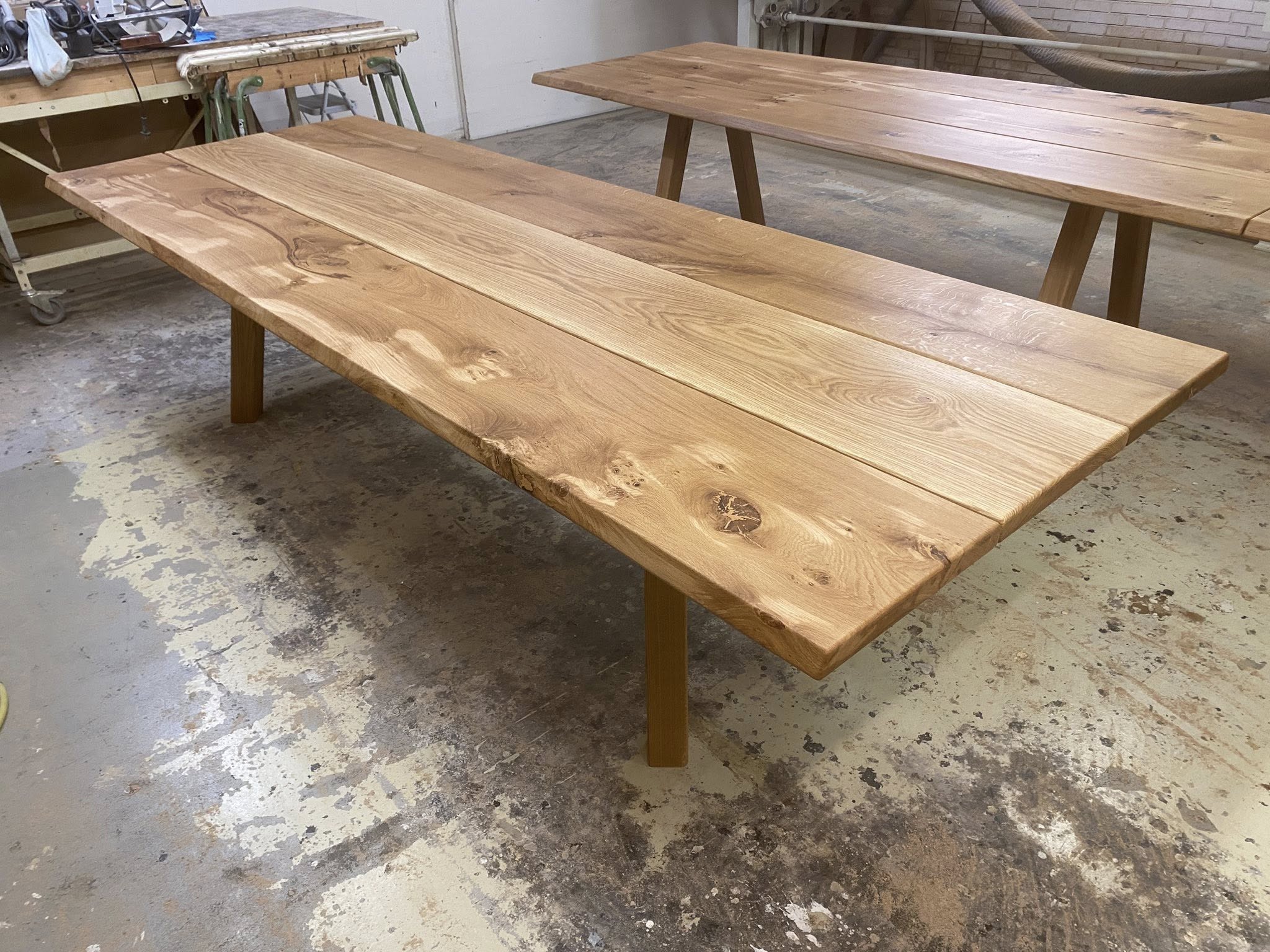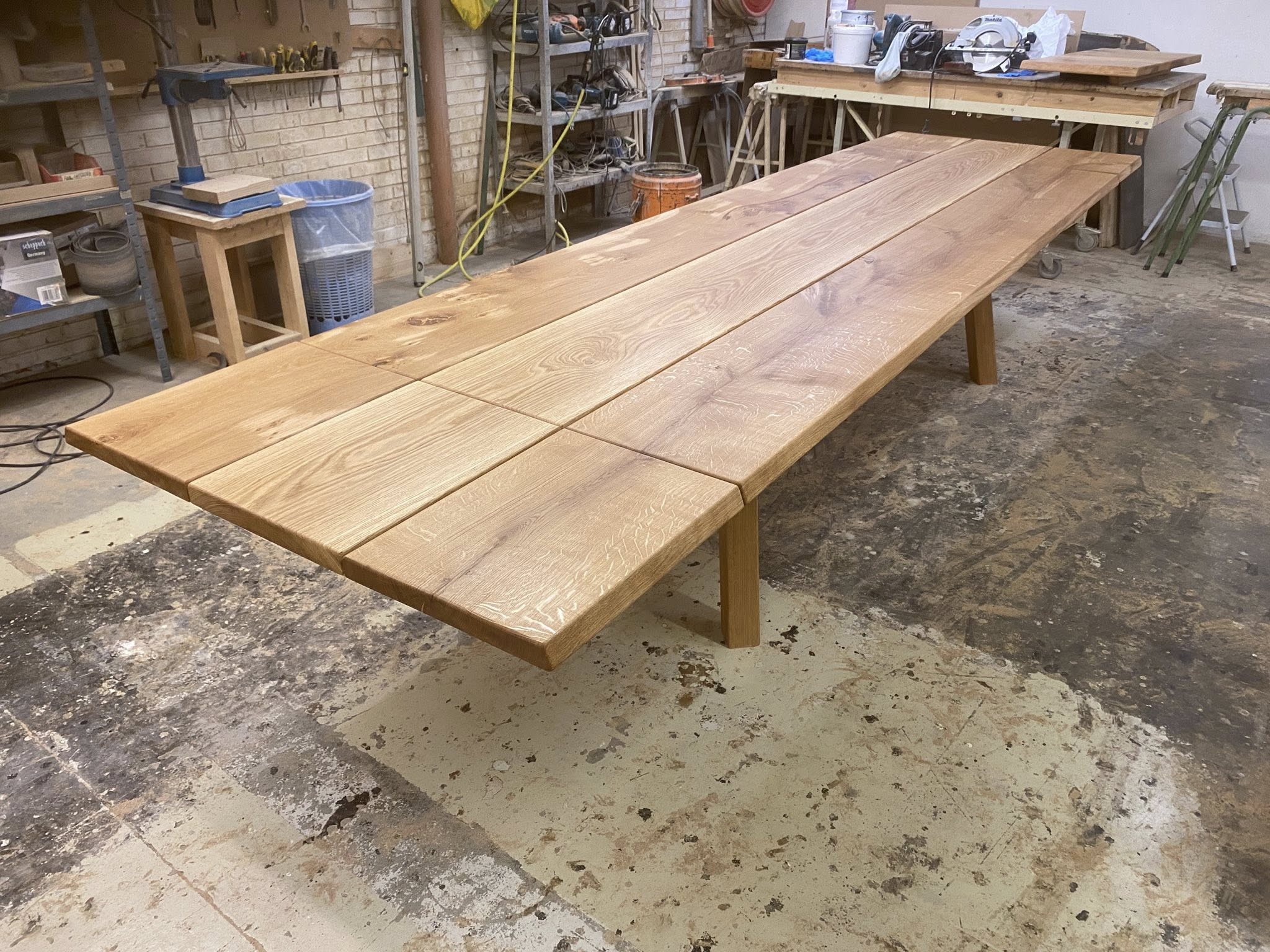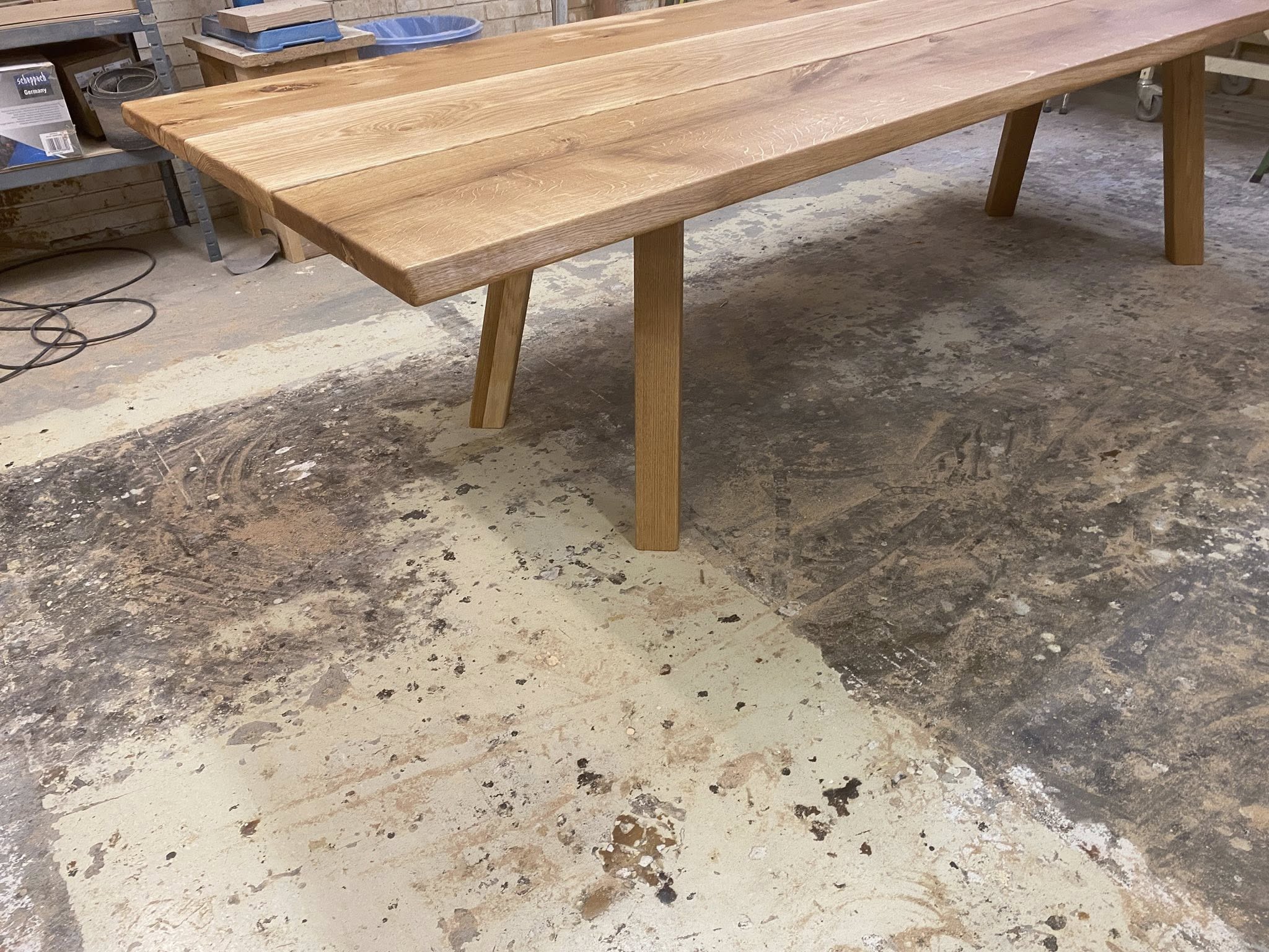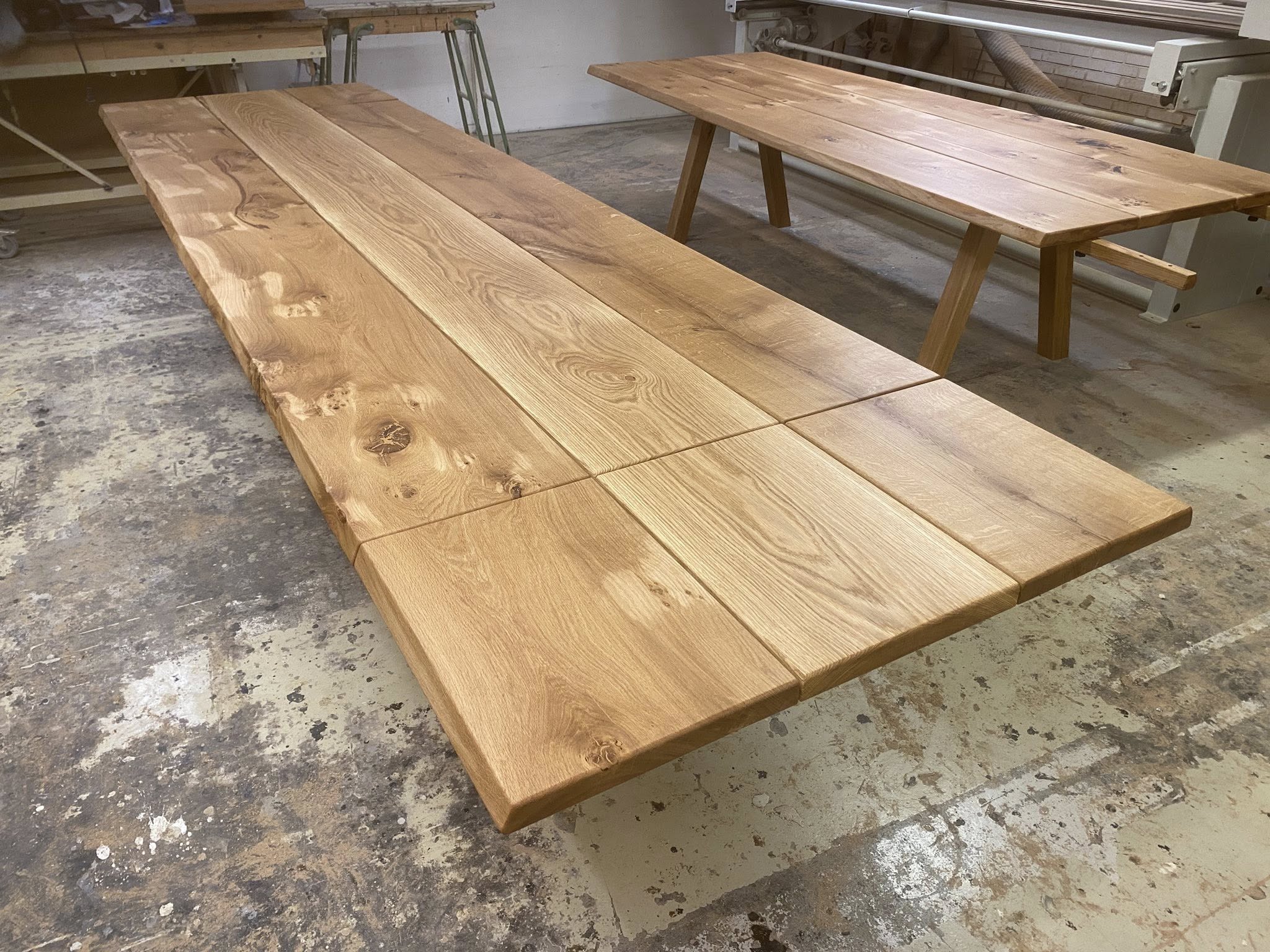 FLOT MEGET RUSTIKT plankebord eg natur olieret L 400/300 cm B 107 cm T 4 cm .