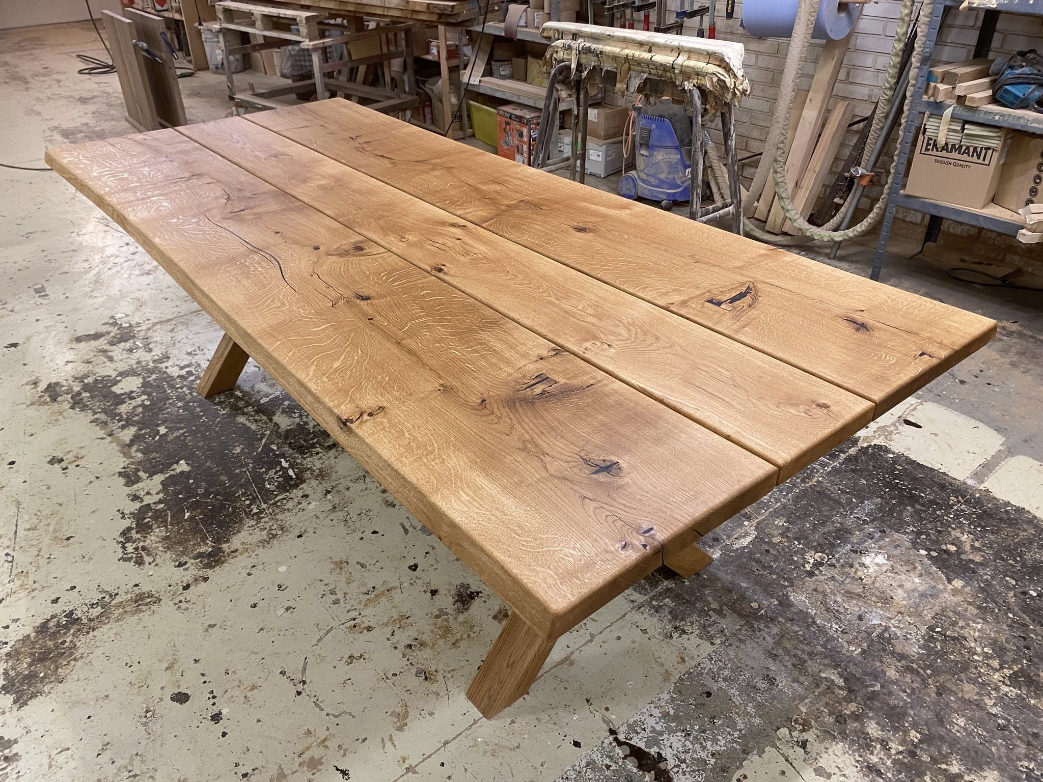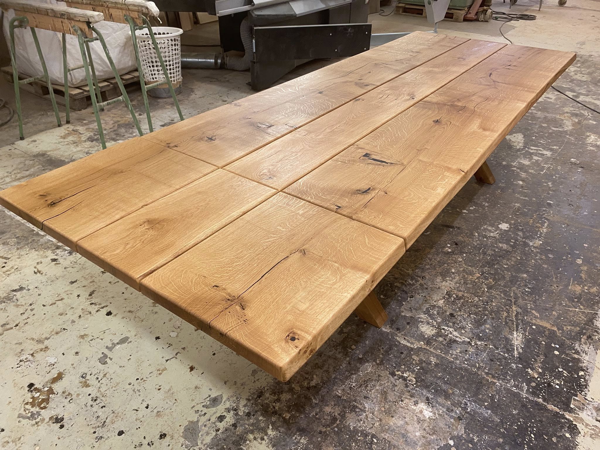 Fint meget rustikt plankebord eg natur olieret L 290/240 cm B 100 cm T 4 cm .