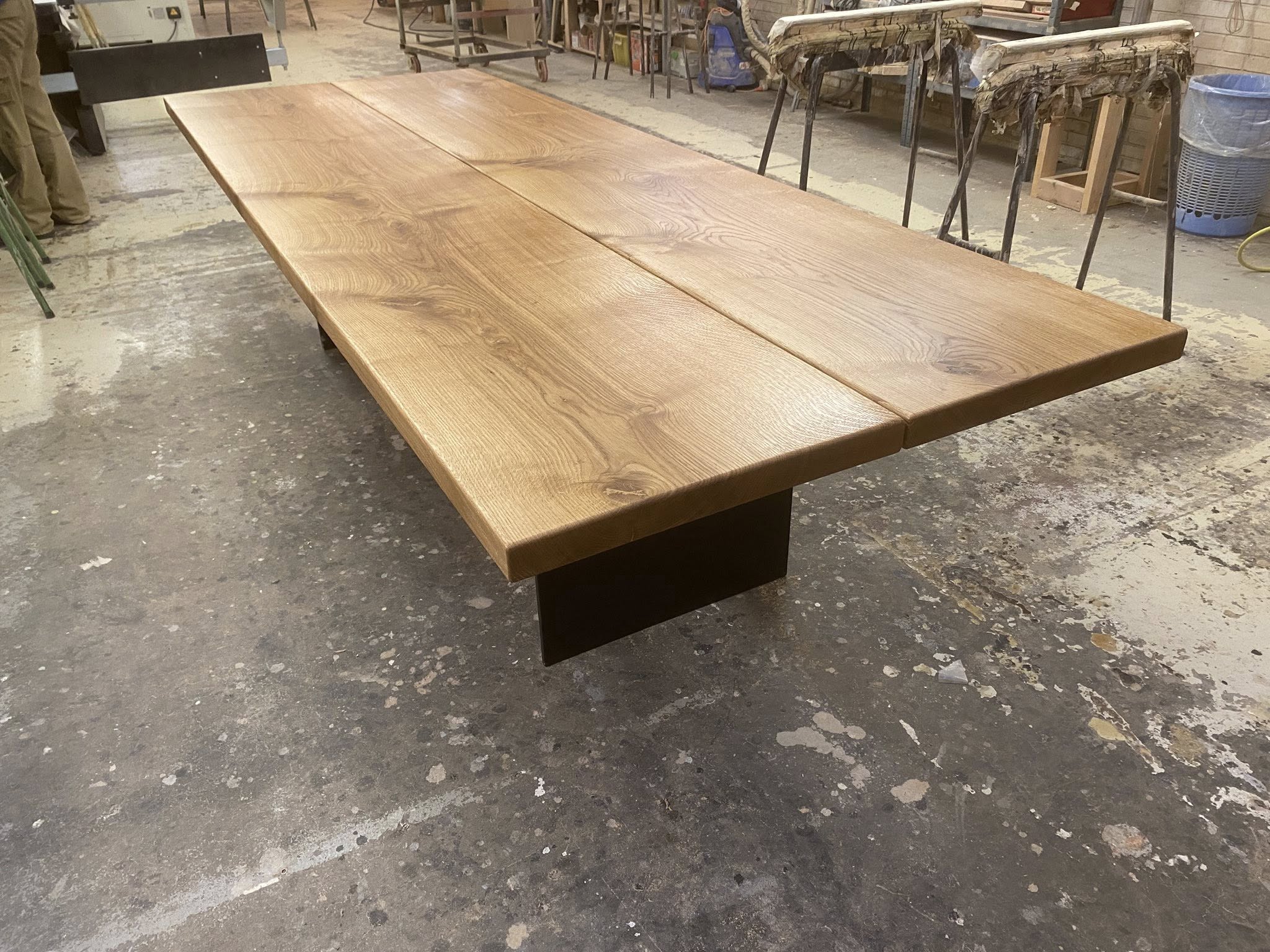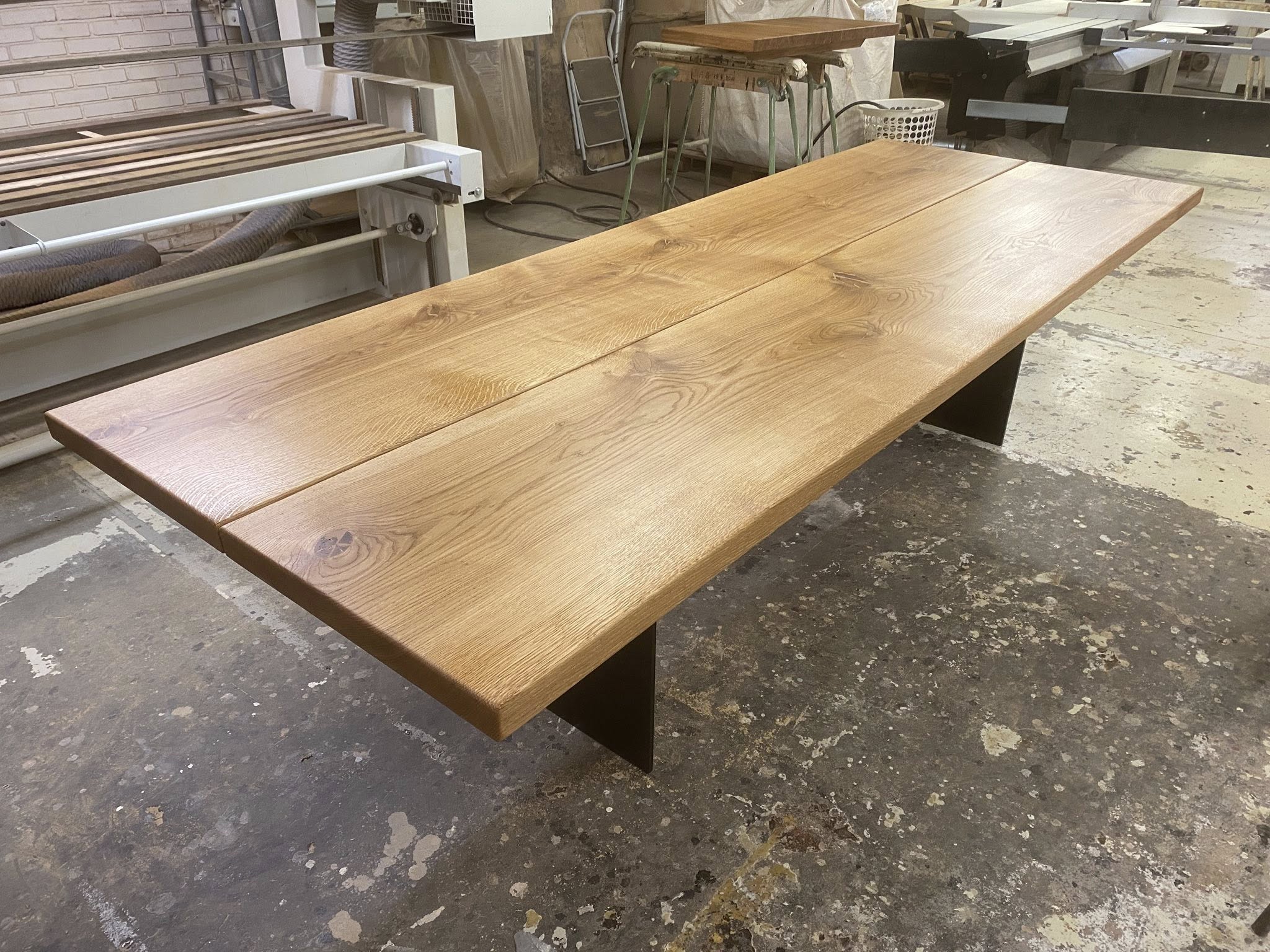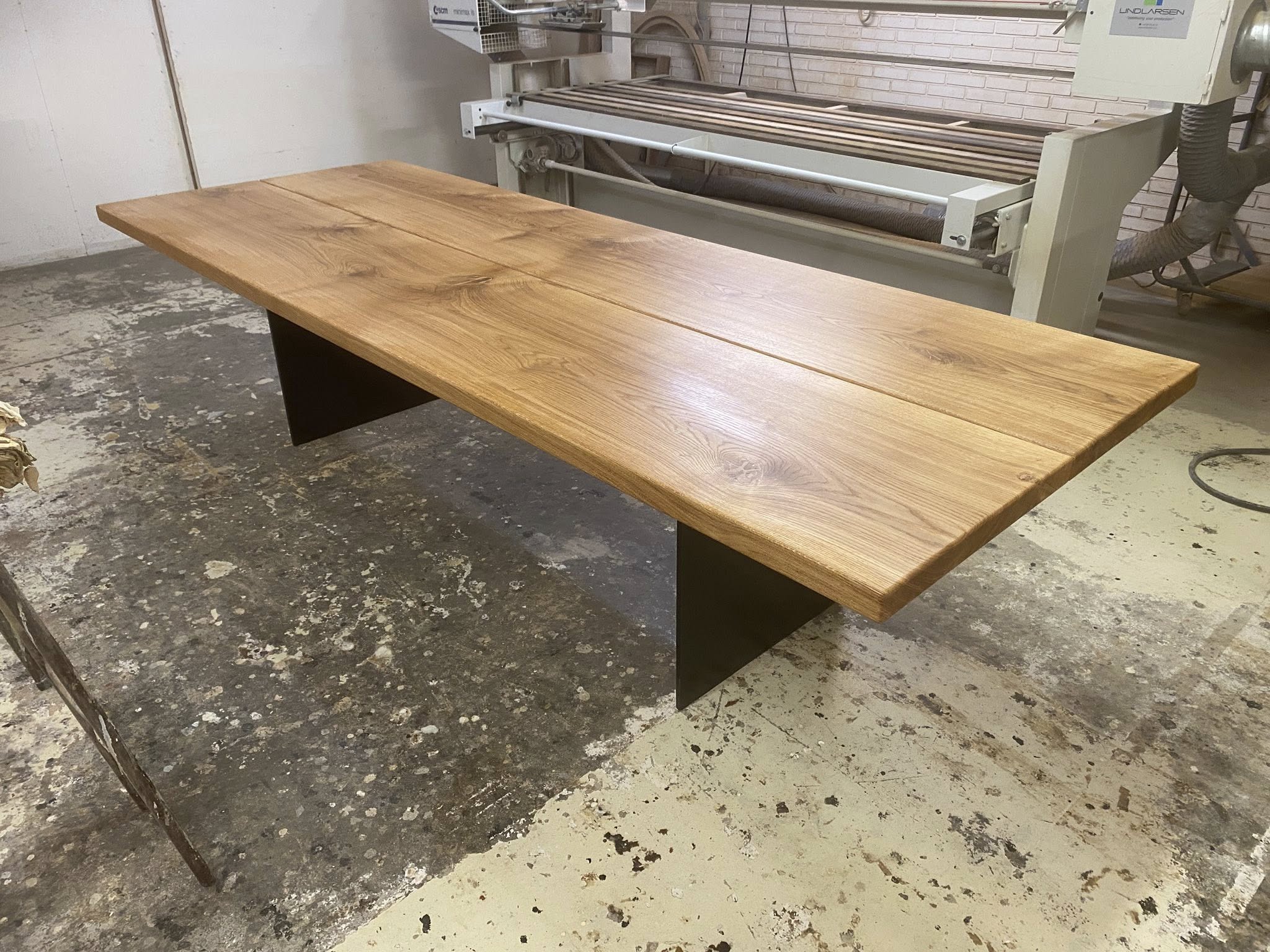STORT KRAFTIG FLOT MEGET RUSTIKT PLANKEBORD BORD Pris 31995,00 KR AFH. Plankebord eg natur olieret EKSTRA KRAFTIGE PLANKER 52 MM OG MASSIVT METAL UNDERSTEL SORT MAT LAKERET L 400/300 cm B 110 cm T 5,2 cm .