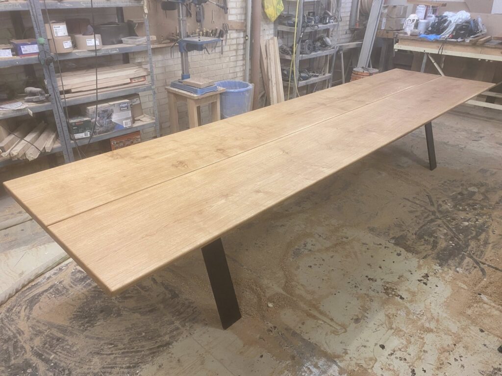 Rigtig flot bord Eg rustik naturolieret. L 500/400 cm B 102 cm T 4,2 cm