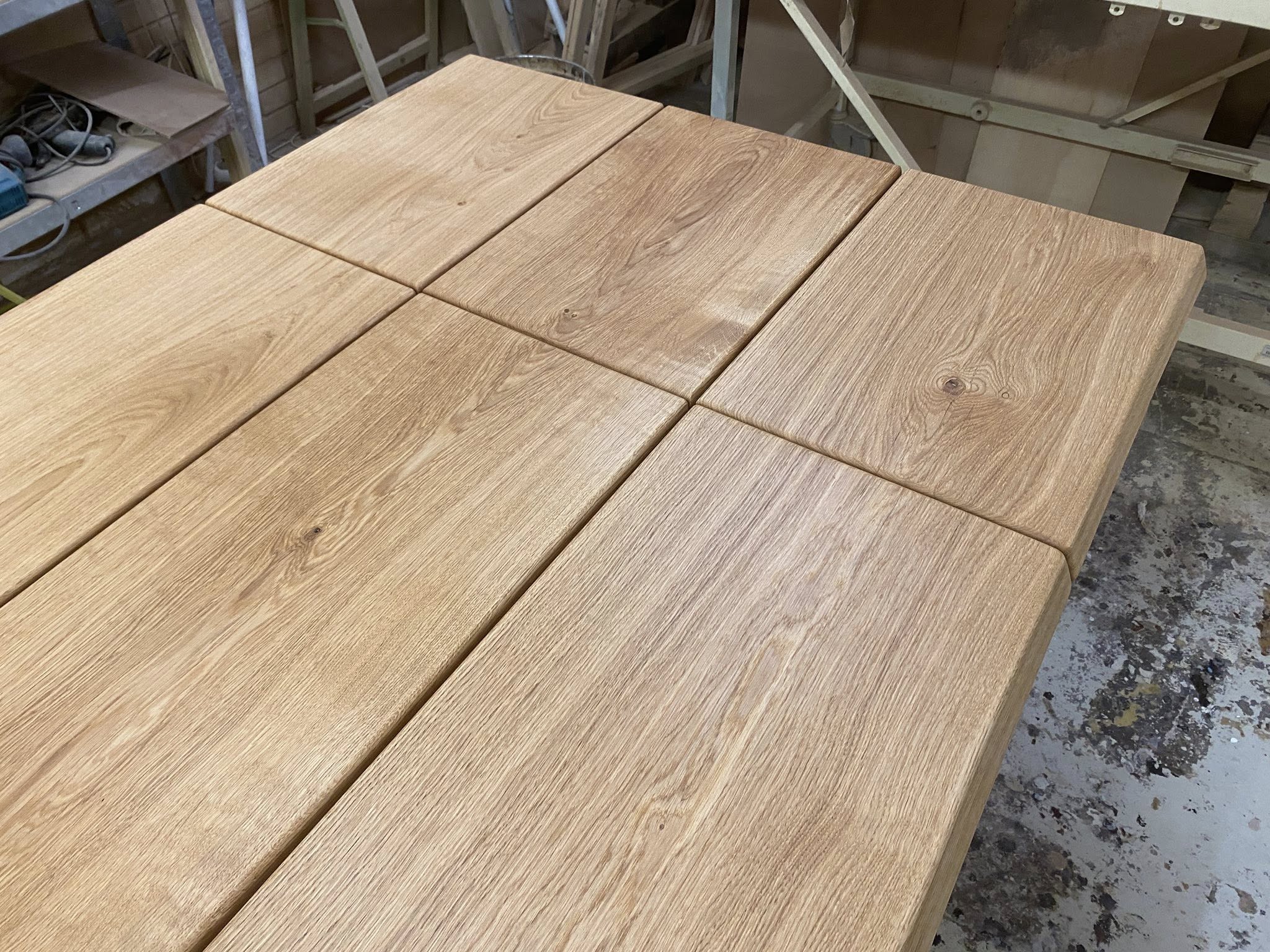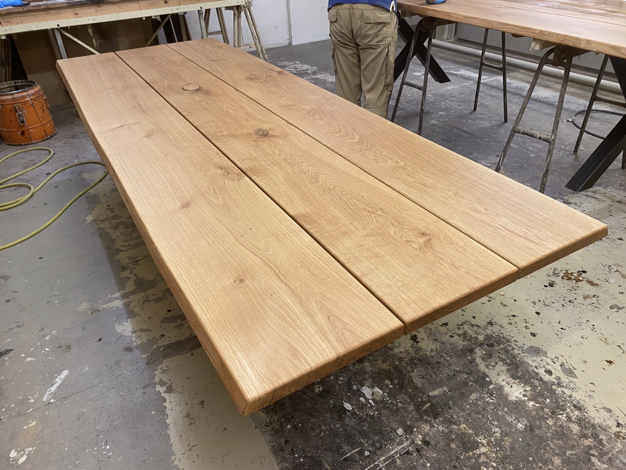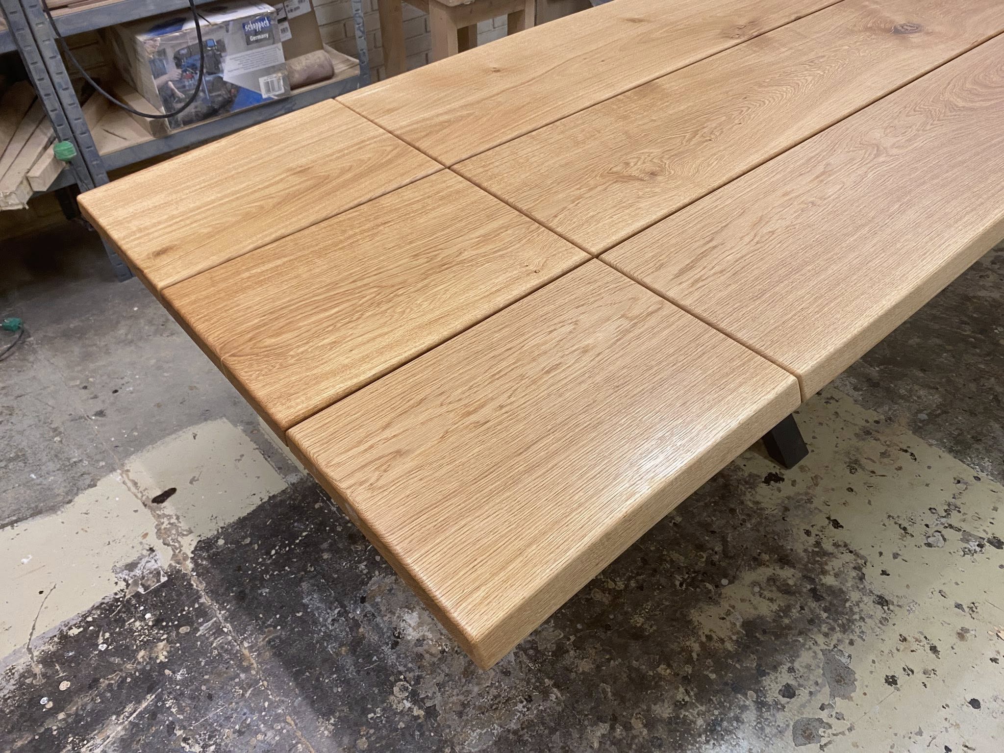 PÆNT MEGET RUSTIKT plankebord eg natur olieret L 400/300 cm B 100 cm T 4 cm .