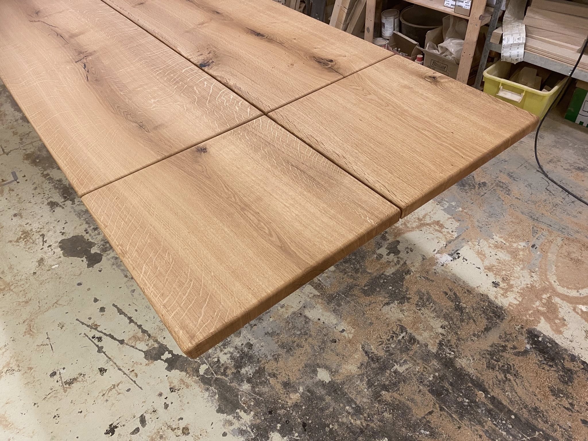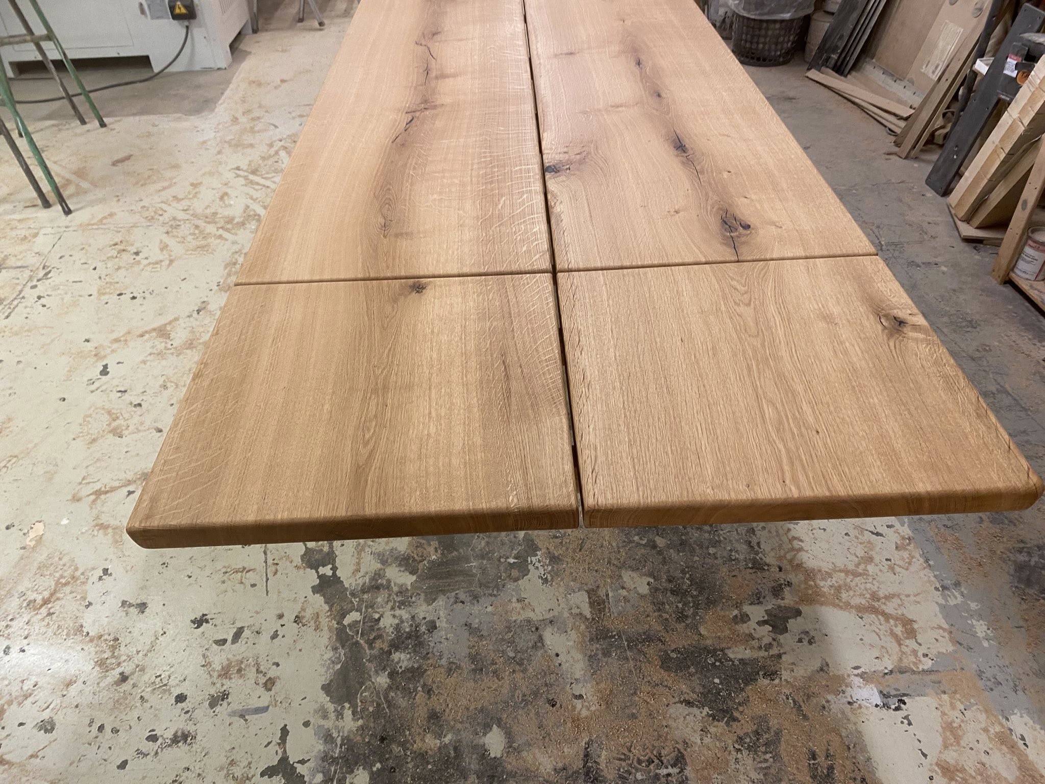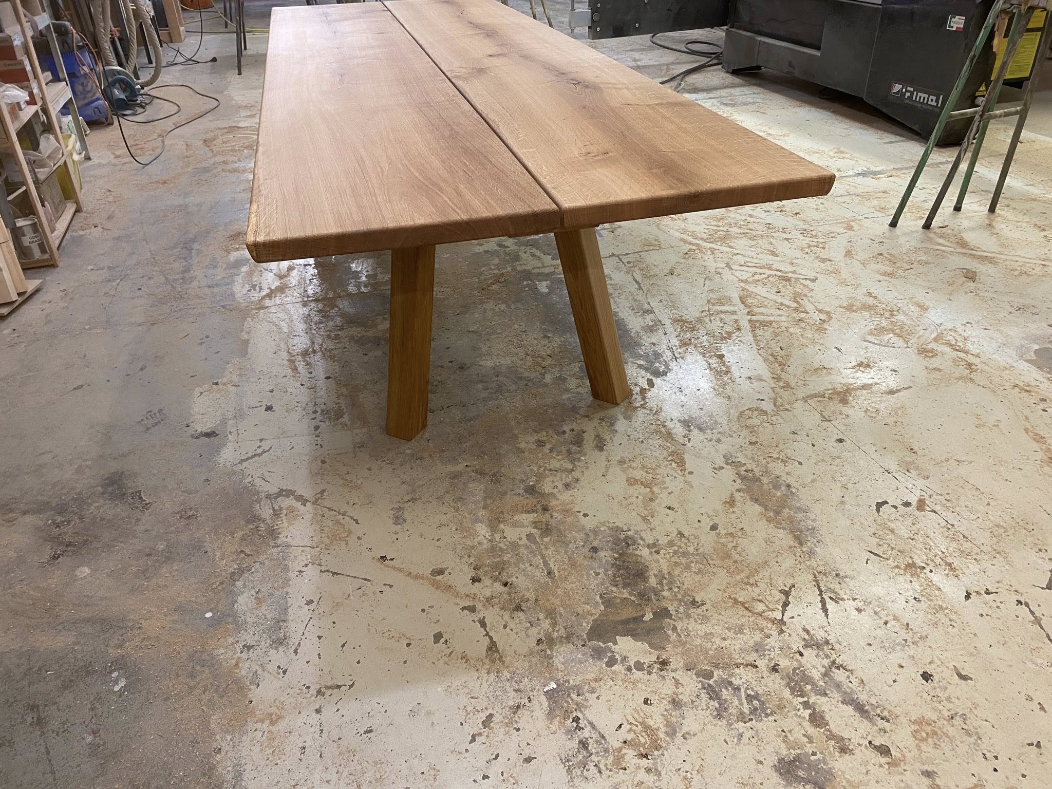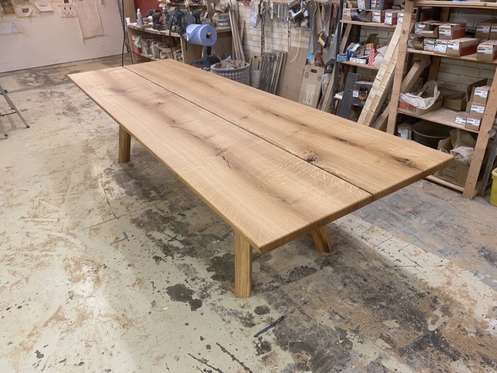 Flot plankebord eg natur olieret L 360/310 cm B 103 cm T 4 cm .