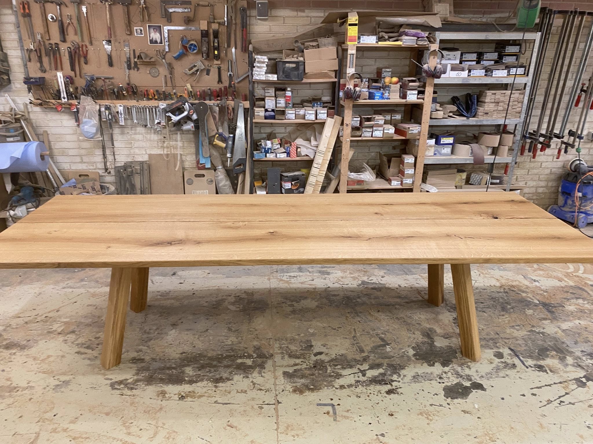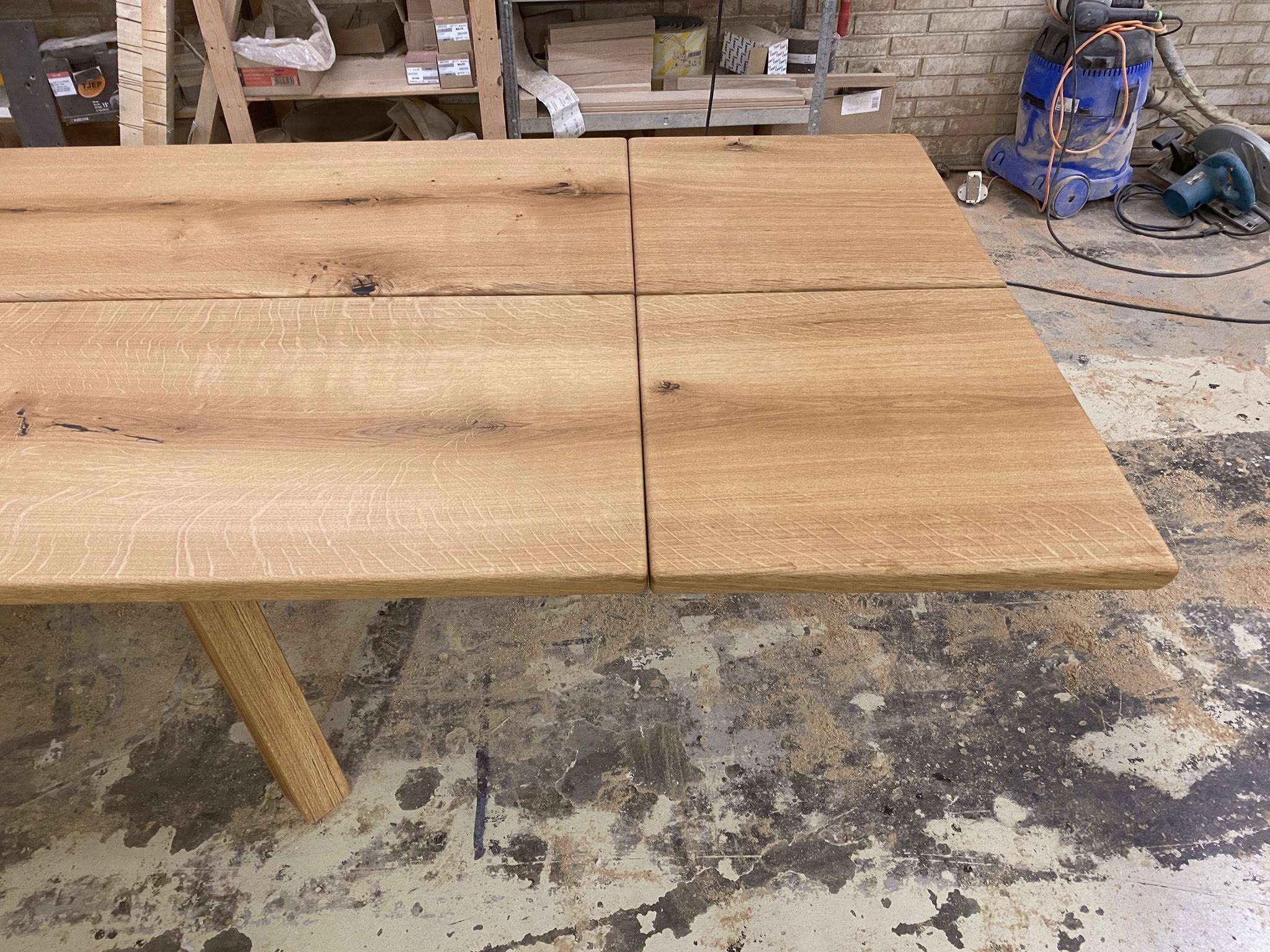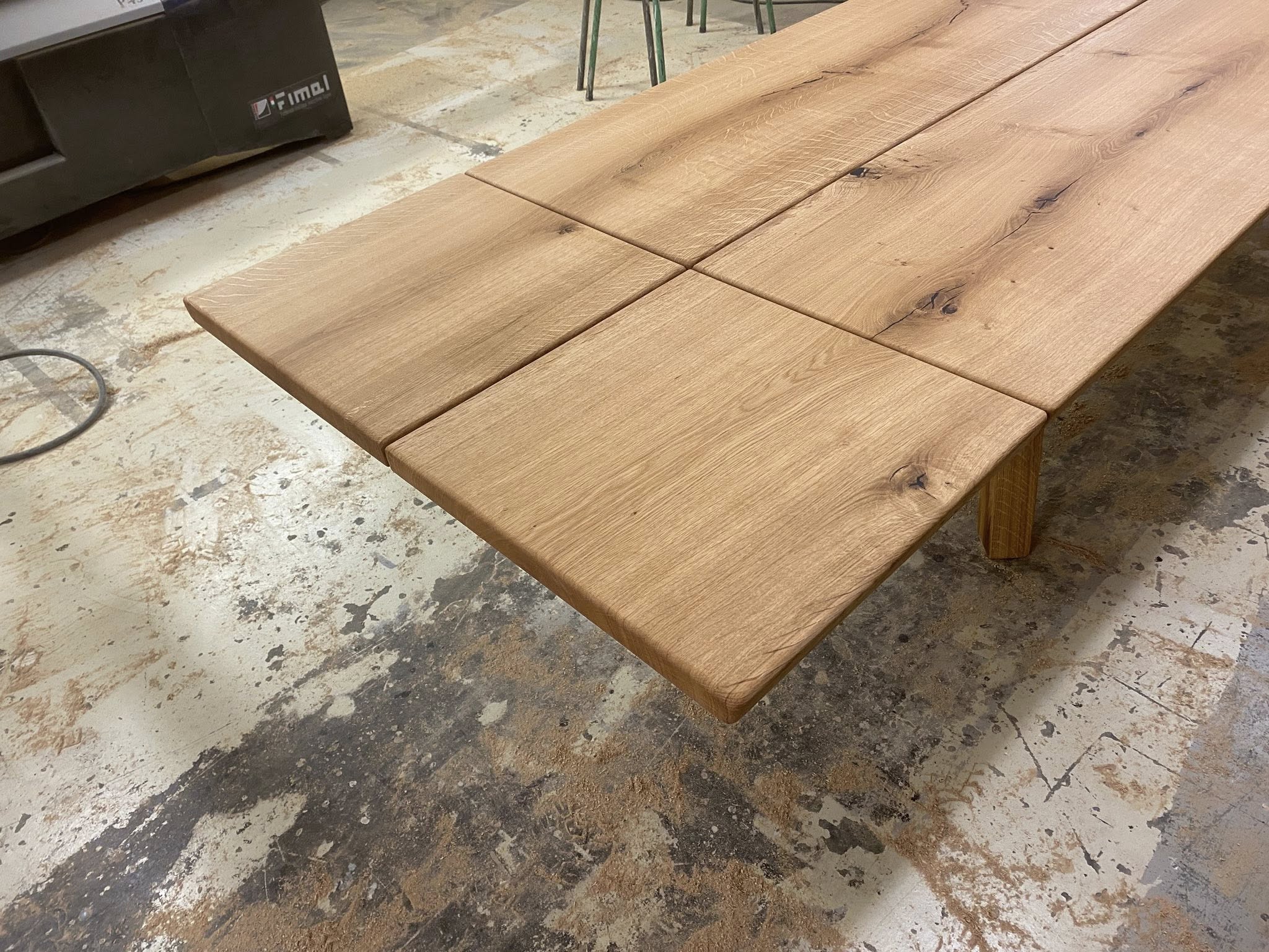 Flot plankebord eg natur olieret L 360/310 cm B 103 cm T 4 cm .