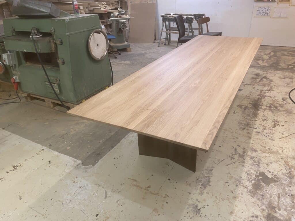 Flot stavlimet bord eg neutral olieret. L 302 cm B 101 cm T 3 cm