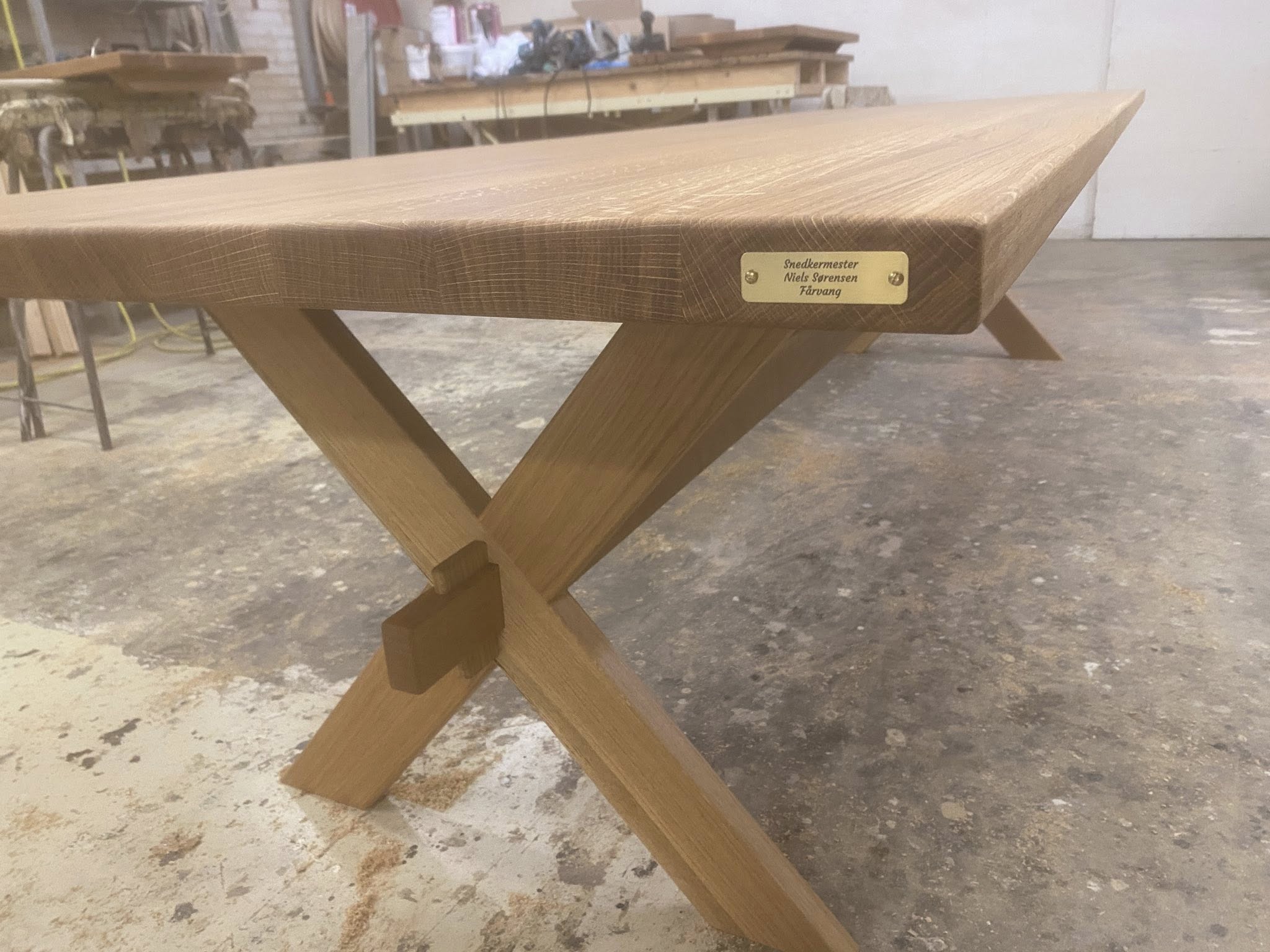 NYT DESIGN . DETTE BORD ER FREMSTILLET MED BREDE STAVE CA 8 -15 CM STAV BREDDE HVILKET GIVER EN UNIK BORDPLADE HVOR DER ALDRIG VIL BLIUVE FRMSTILLET NOGET DER ER ENS. DERFOR ER HVER ENKELT BORDPLADE UNIK.