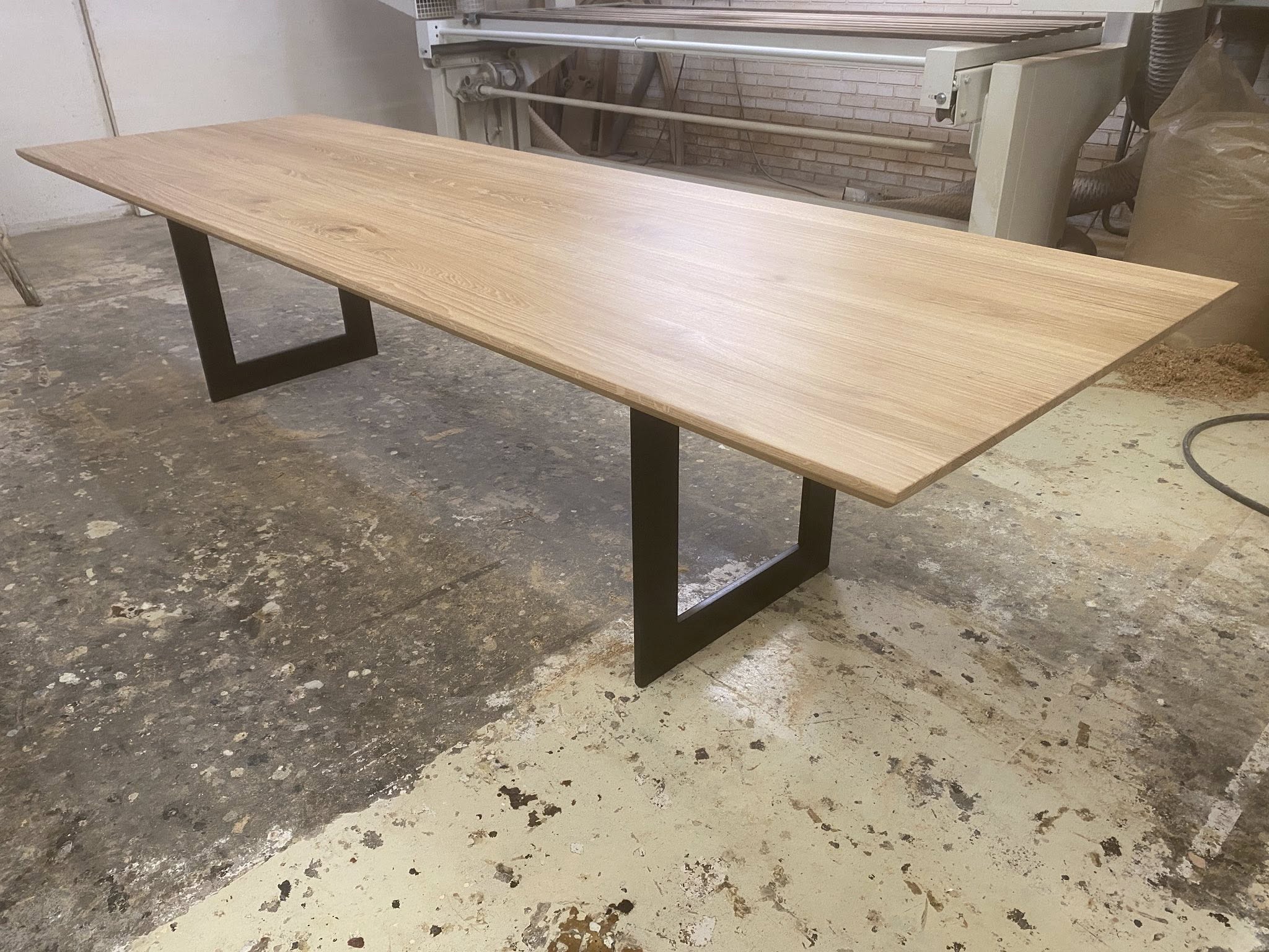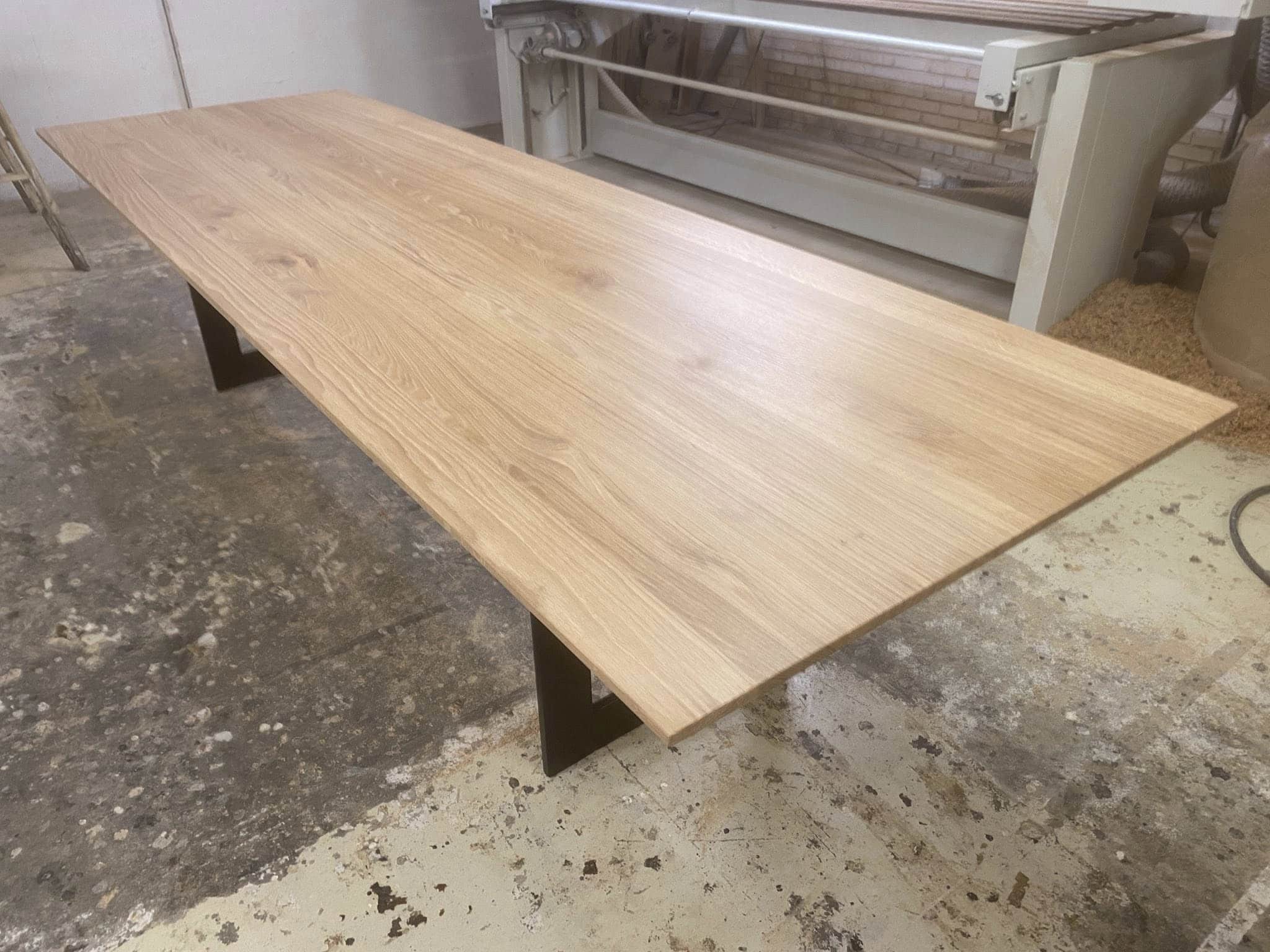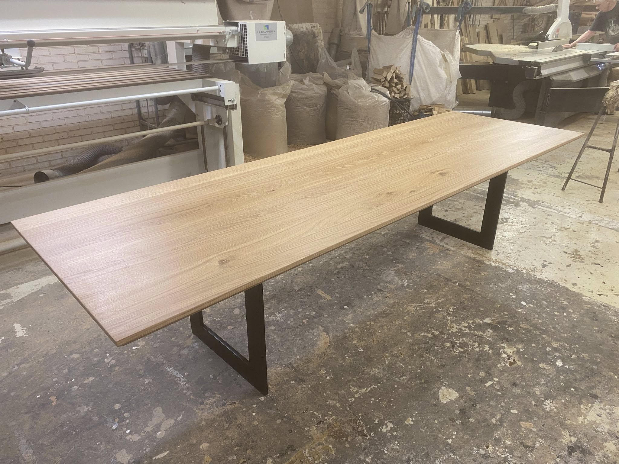 Eg rustik stavlimet med forskellige stavbreddeer ca 8-15 cm. Hvilket giver et unikt look. Nyt metal understel sort mat lakeret.
