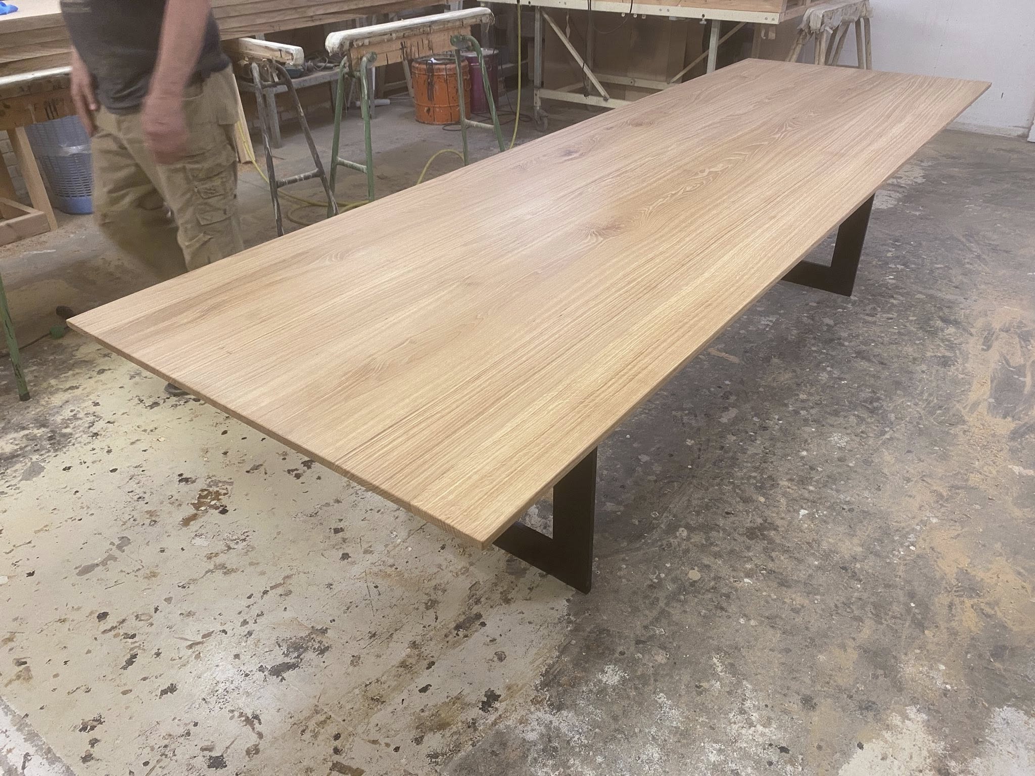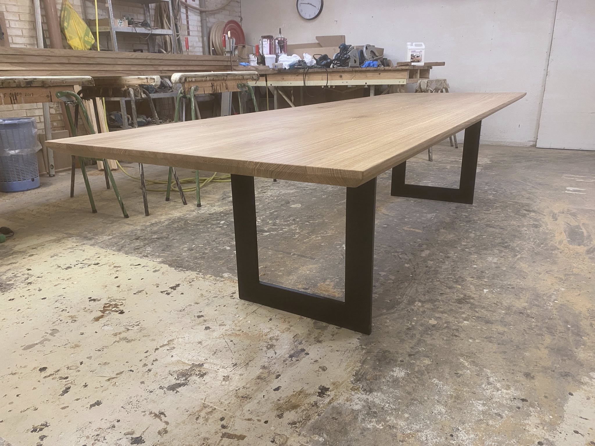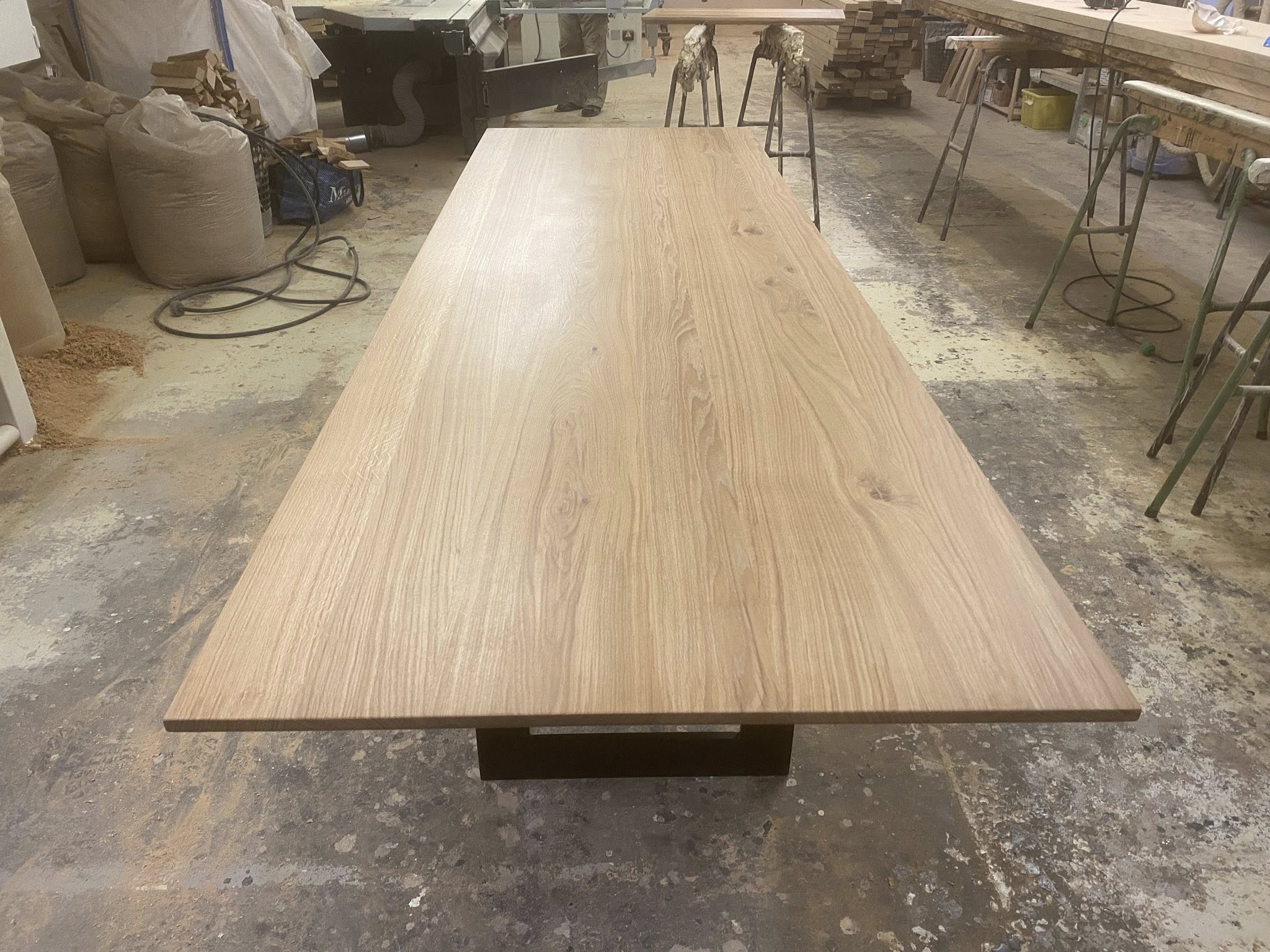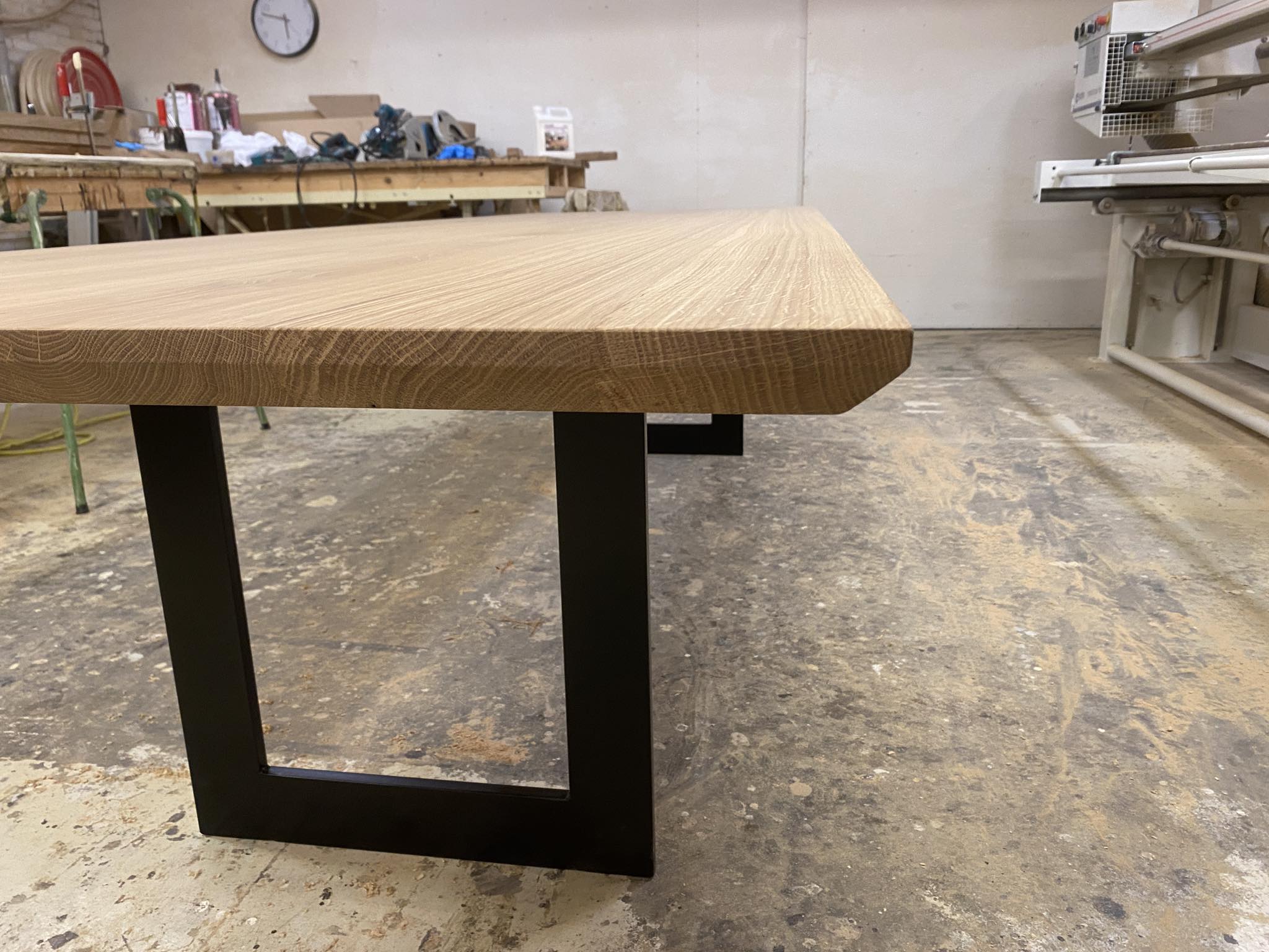 Eg rustik stavlimet med forskellige stavbreddeer ca 8-15 cm. Hvilket giver et unikt look. Nyt metal understel sort mat lakeret.